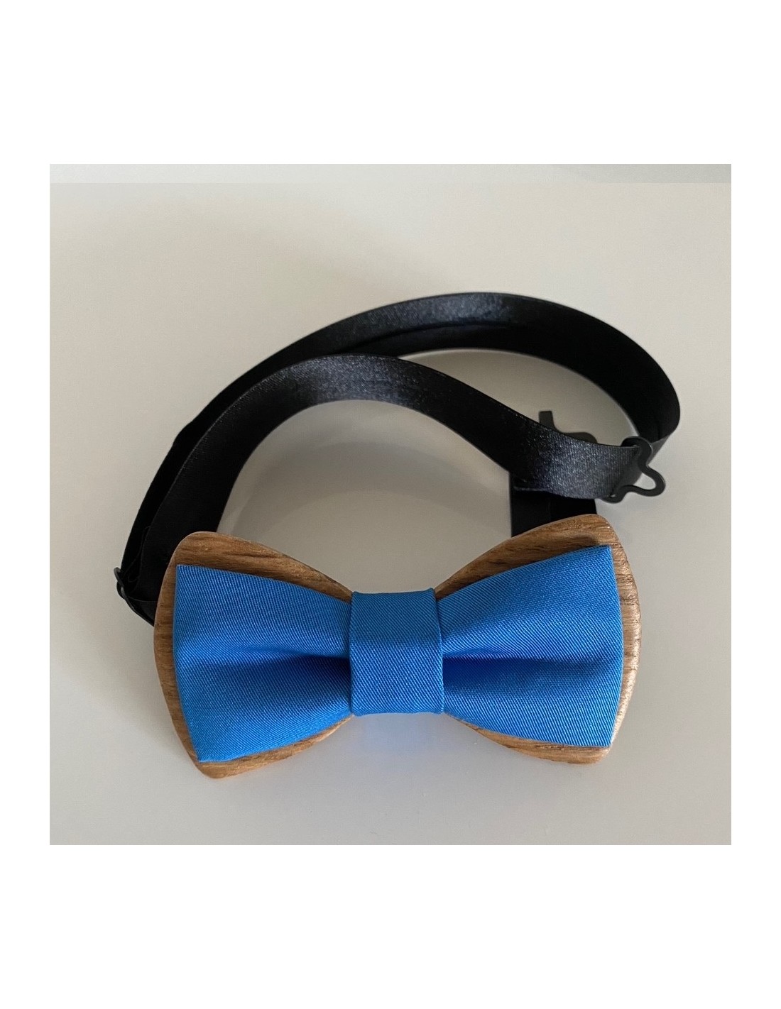 Nous vous présentons, Louis, nœud papillon en bois associé à un tissu sur le thème de la mer. Il vous permettra de vous évader.