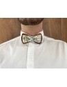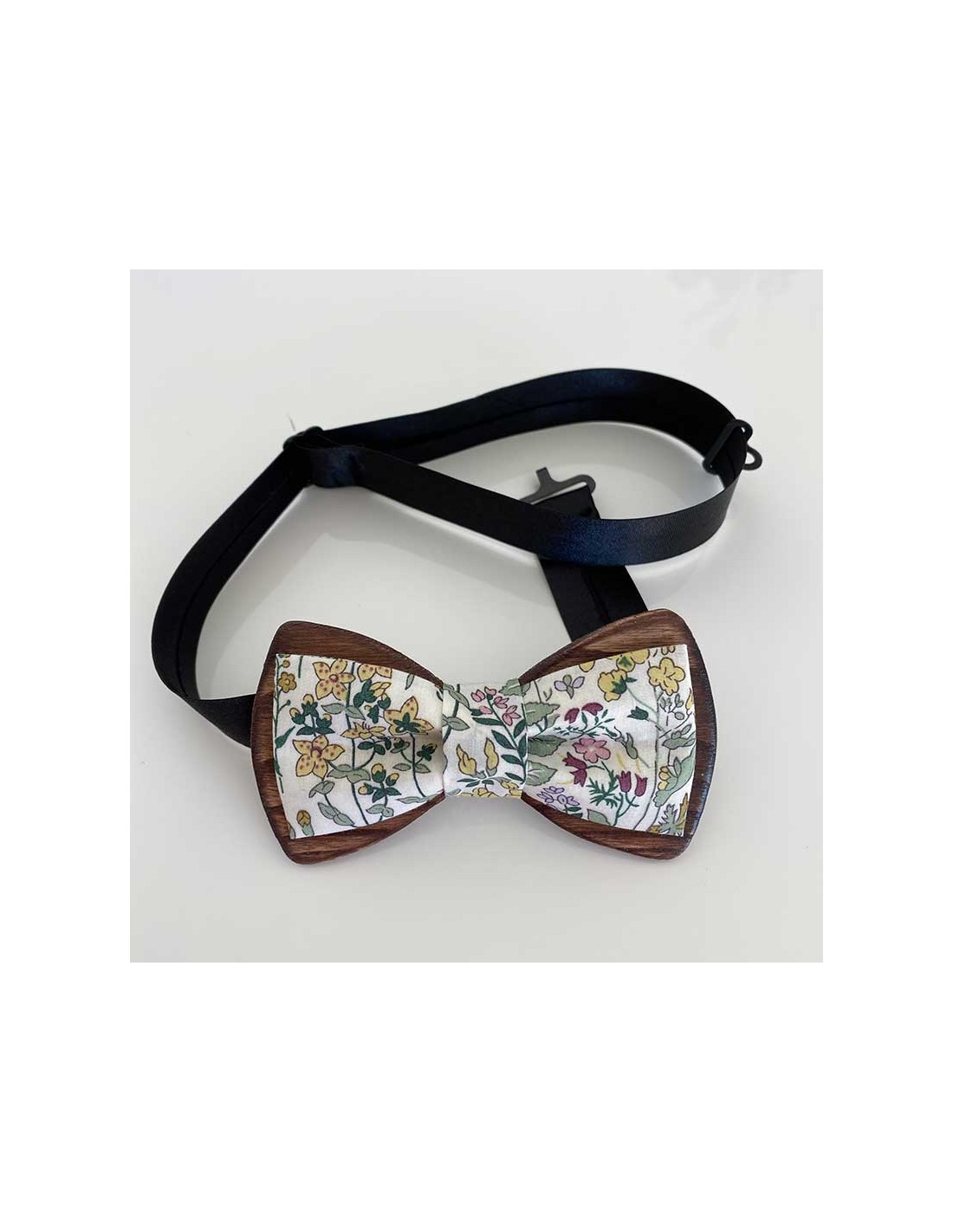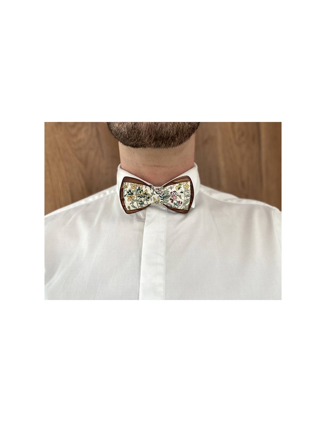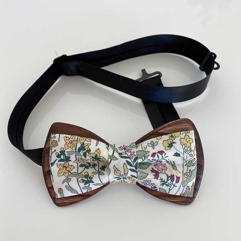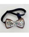 Nous vous présentons Antoine, nœud papillon en bois avec un tissu fleuri, dont les teintes bleutées aux motifs artistiques ne laisseront personne indifférent.