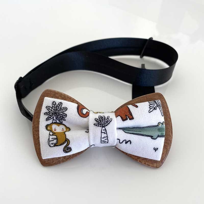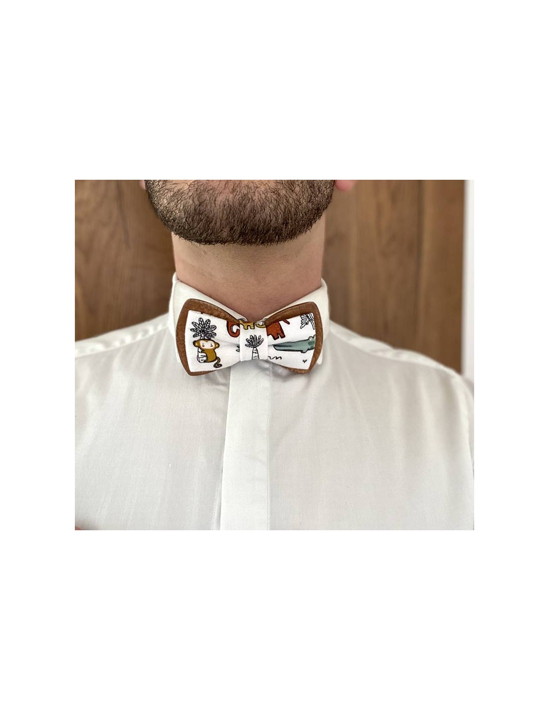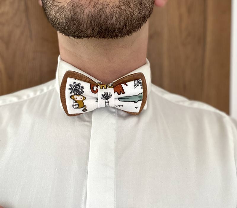 Nous vous présentons Corentin, nœud papillon en bois et tissu coloré aux influences latines.